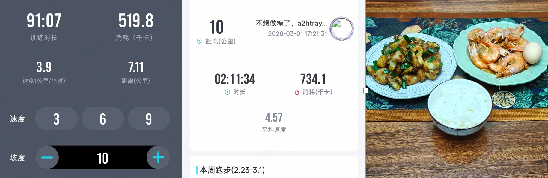 下午做了力量训练,又做了 10km 跑步/爬坡,自己做点吃的,打个卡。